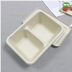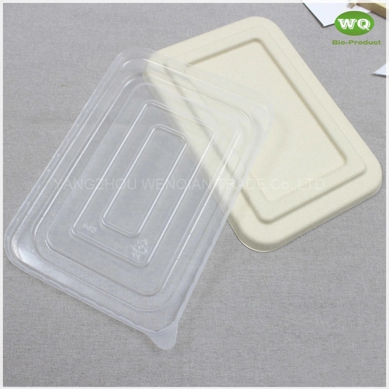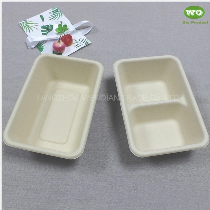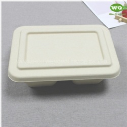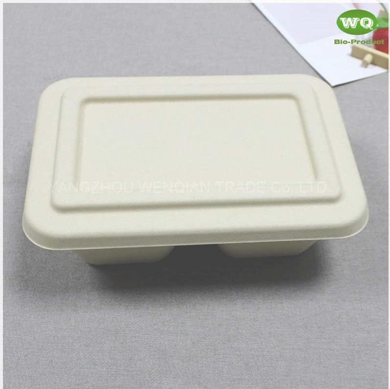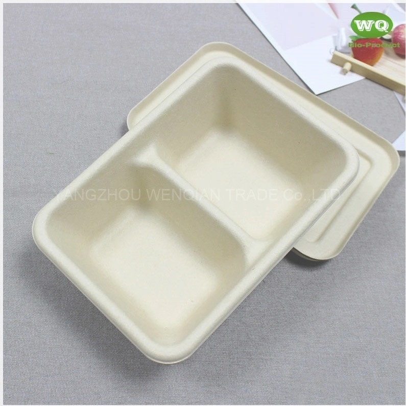 Biodegradable Wheat straw Fiber Natural Bagasse Fibers Sugarcane Paper 700ml Rectangular Pulp 2-Coms Meal Boxes With Lid