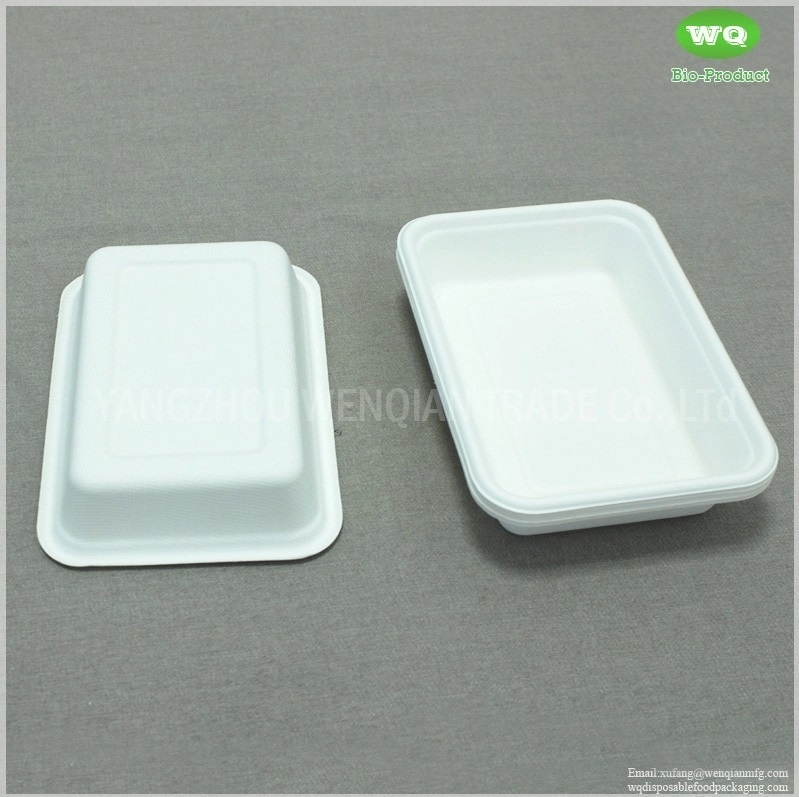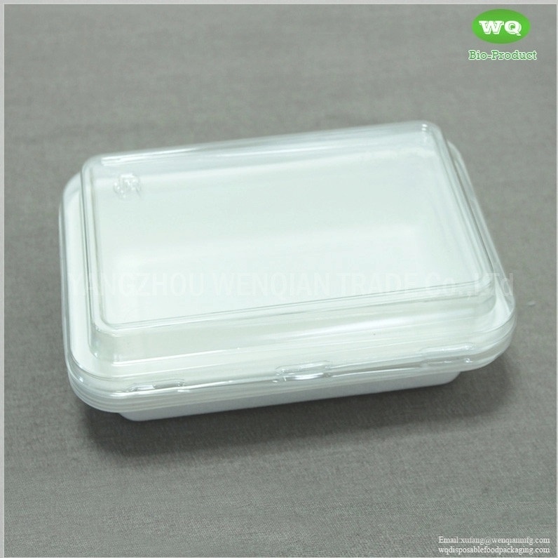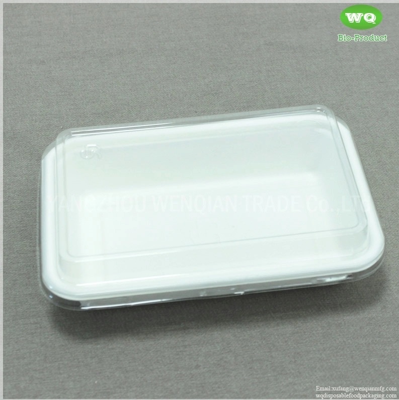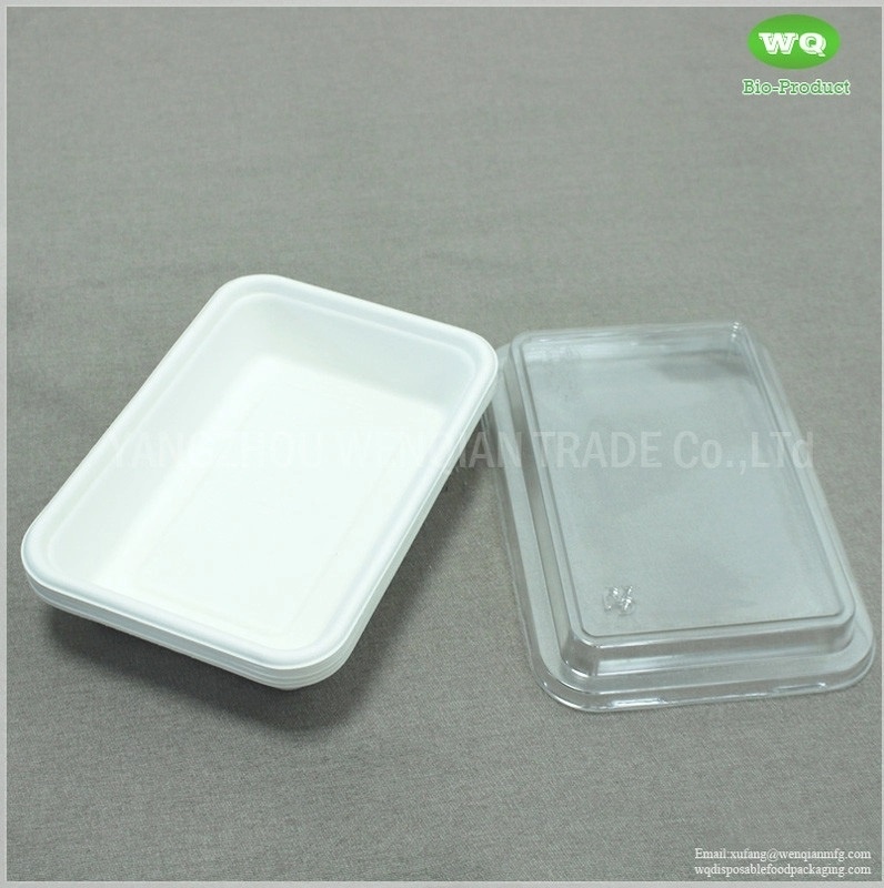 Bleached 500ml Biodegradable Sugarcane Bagasse Lunch Box With Clear PET Lid-Durable Compostable Sugarcane Fiber Tray